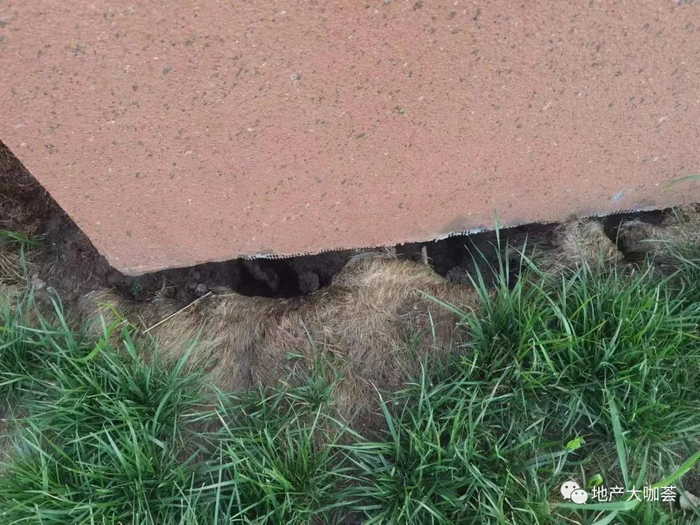 墙角回填不均匀导致地面沉降形成的裂缝。