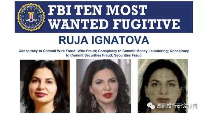 伊戈纳托娃 2019 年被指控犯有包括电汇欺诈和证券欺诈在内的八项罪名。她是FBI十大通缉要犯名单上唯一的女性。