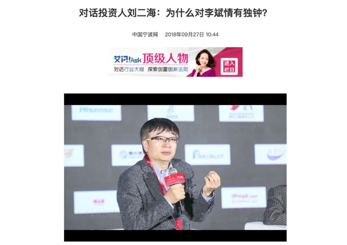 刘二海创立的愉悦资本是蔚来早期投资人。