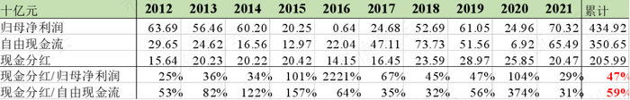近十年,公司累计分红2060亿元,占累计归母净利润的47%,占累计自由现金流的59%。