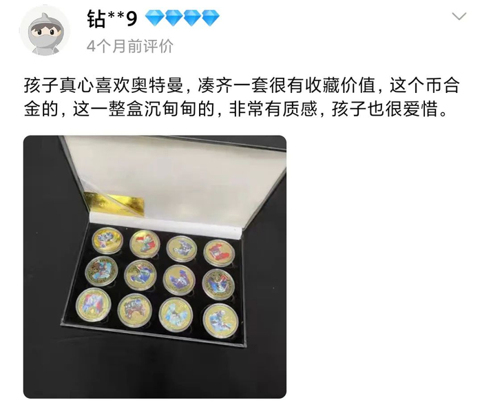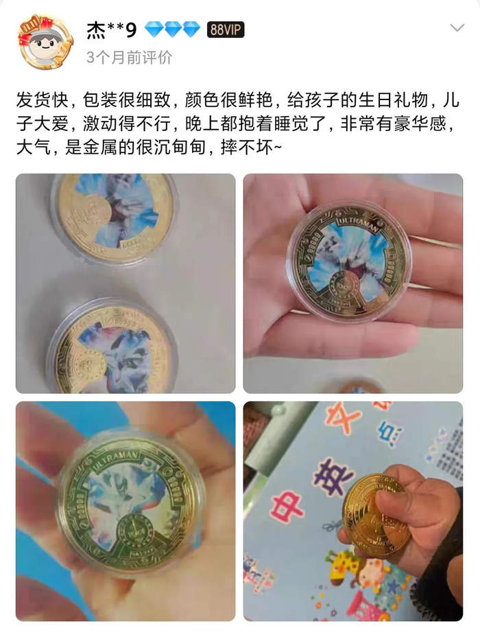 孩子从小就爱看奥特曼,家里专门给他买了好多碟片,这次想着快儿童节了,就凑了一套纪念币送他,沉甸甸的,有分量又有质感,十分有收藏价值!