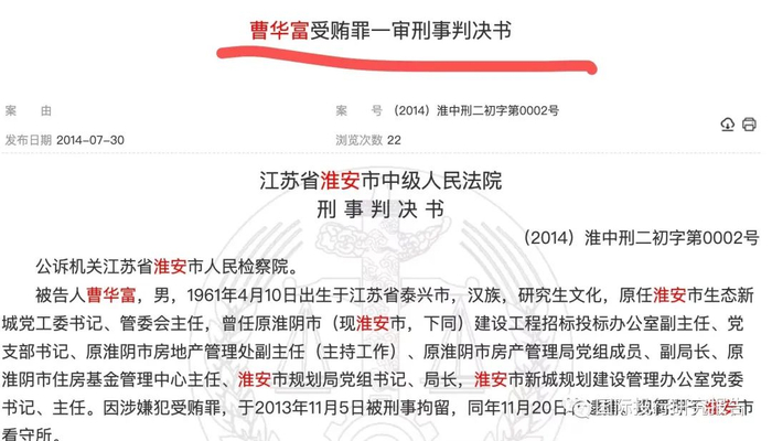 1、为土地拆迁 行贿原淮安清河区区长10万元