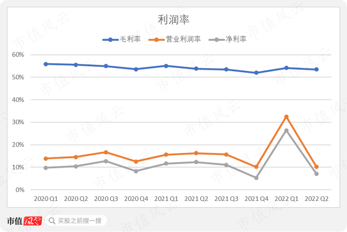 公司毛利率一直维持的较为稳定,近几年仅在52%~55%之间波动。毛利率没有因为涨价而提升也能说明涨价也只是迫于通胀压力的无奈之举。