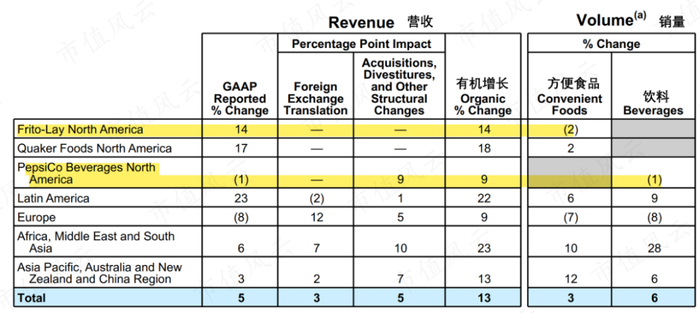 桂格麦片业务的营收占比较小,所以主要北美的零食和饮料业务就可以较为直观的体现公司在北美,乃至全球范围的表现。