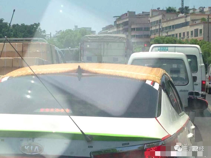 也有网友发现,一辆起亚燃油车在全景天窗上铺了一层垫子。