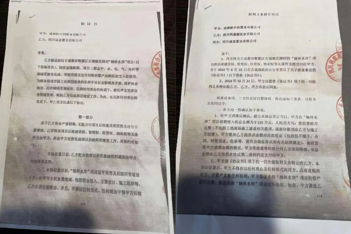 2018年6月25日,诚益公司和成都新合创置业有限公司(以下简称新合创公司)签订《协议书》。《协议书》称,因资金链断裂,项目二期总平、水、电、气、光纤等基础设施未完成,导致无法交付给安置户及购买业主入住使用。为了解决这一问题,维护社会稳定,在古城镇党委和花牌村委协调下,诚益公司委托新合创公司发挥自身优势,帮助完成项目建设工作。