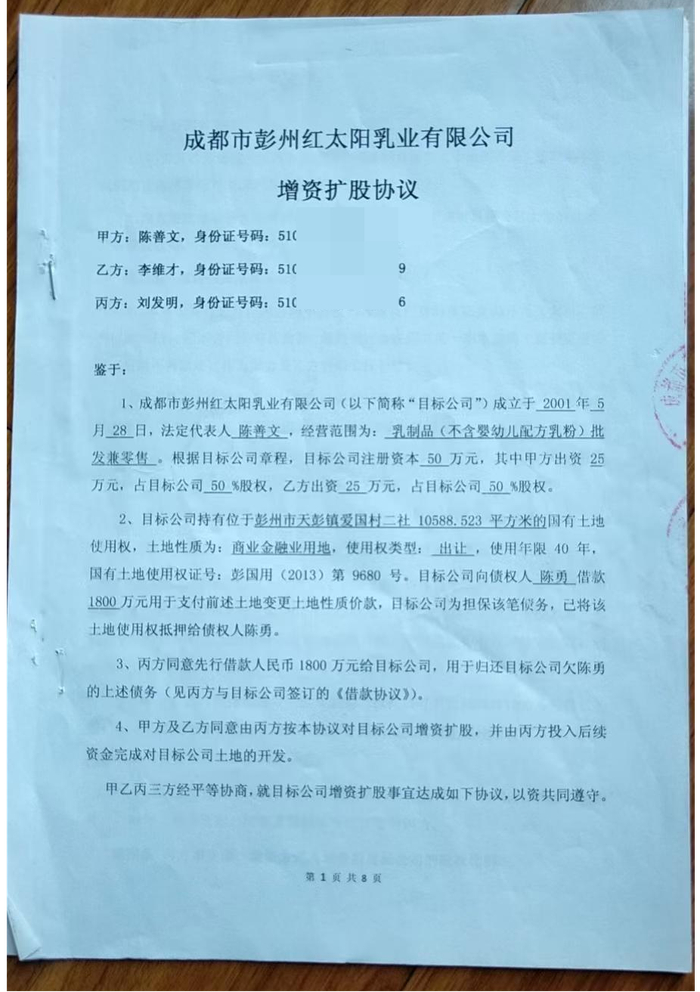 2014年3月左右,诚益公司资金链断裂。按理说这刚赚了钱,怎么就会没钱了呢?原来,大股东刘发明在一期项目赚到钱后,绕开股东李杨光,与彭州市人李某、陈某合作,另起炉灶,在彭州市成了红牡丹置业有限公司,在当地开发新的项目。