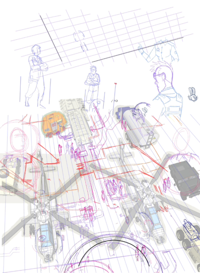 这是《球状闪电(下)》里的一处分镜手稿,可见,每个人物在画面中的位置以及与背景的呼应关系都经过巧妙的安排。