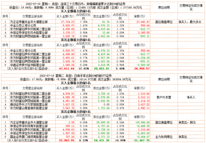 上文龙虎榜提到7月18日、19日买卖席位几乎都是“散户大本营”在玩高位筹码接力,从侧面验证散户再次履行了高位接盘侠的神圣天职。