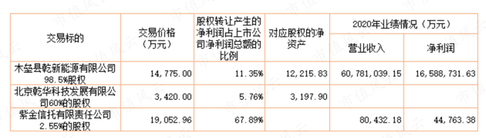 另外一个,北京乾华科技发展有限公司(以下简称乾华科技)的60%净资产为3200万元,但是转让价格只有3420万元,较净资产溢价不到7%。当然,也要承认乾华科技在2020年是亏损211万元。