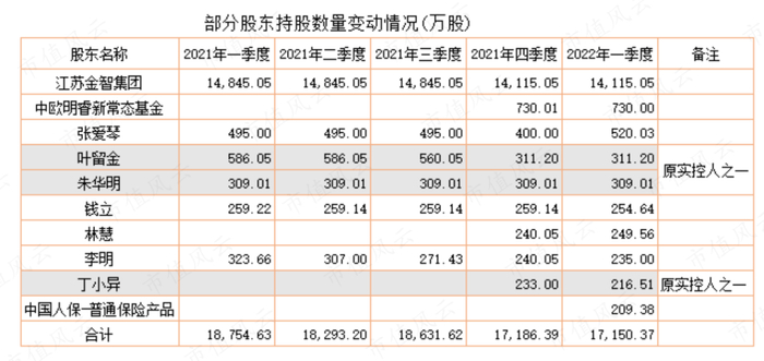 而与之形成鲜明对比的是上市公司原实控人徐兵、叶留金、朱华明、丁小异、贺安鹰5名自然人,2020年末还是实控人,而2021年9月,5人宣布分道扬镳,取消此前的一致行动人协议,由此导致上市公司无实控人。