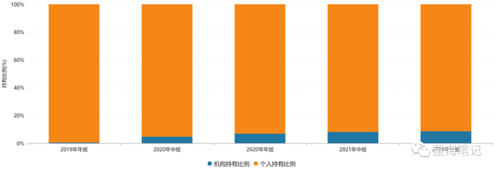 这里值得注意的是杨锐文的环保优势规模下滑了1/3,而本人管的电子信息产业和创新成长都是两位数正增长,推测与客户构成有关。环保优势(上图)的客户结构中机构客户一直占50%以上,而下图创新成长中却是散户主导。作为基金业“小作文”的领导者,十万粉大v在个人投资者群体中的威望还是基金规模的重要保障。但机构投资者就没那么“听话”了。