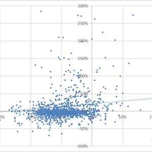 更大范围来看,跑赢指数0-5%和跑输指数-5%-0的两组基金份额平均变动分别是7%左右和-2%左右,两组均值差异具有统计显著意义,但中位数分别是-2.1%和-3.8%,差异没那么明显。说明基金短期业绩对规模还是有影响的,但个体差异很大,分布不均。