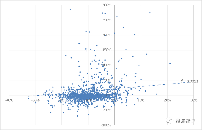 注:上图横轴为基金复权净值收益率,纵轴为同期基金规模变化。