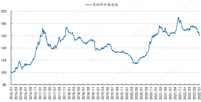 截至7月21日,原材料价格指数降至160.3,较6月末下降近4%,较三月末降幅近9%,制造企业的成本压力有所缓解。