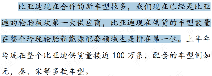 如今,玲珑与比亚迪的合作保持紧密,玲珑成为比亚迪轮胎板块的第一大供应商,随着比亚迪车型的持续热销,预计玲珑的配套轮胎也会随之放量。