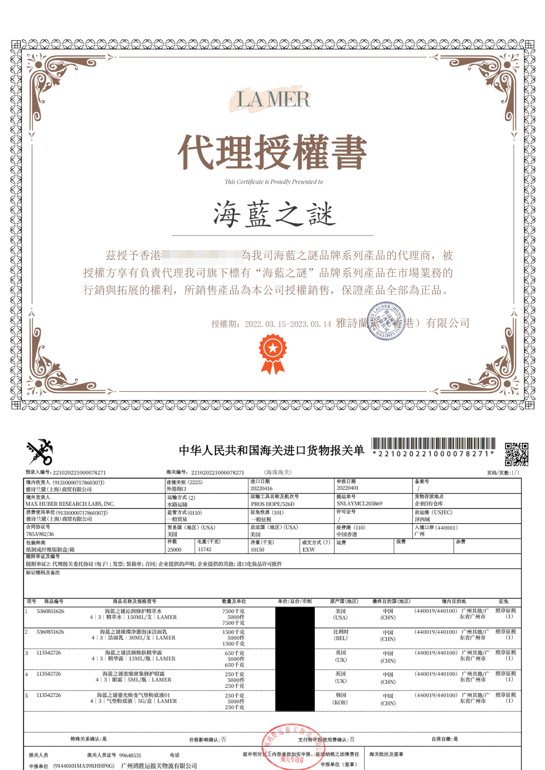 多说无益,直接给大家看官方授权、检疫证明和进口报关单。