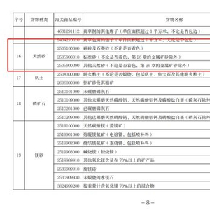 根据商务部、海关总署关于公布《出口许可证管理货物目录(2022年)》的公告,天然砂主要包括三类,其中就有“硅砂及石英砂”。