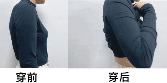 同事小张亲自穿上看效果,原本穿普通内衣的胸部扁平,下垂,穿上冻冻内衣后,胸部更挺拔,更有型,穿衣更好看!