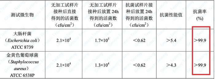 经检测,实验条件下,对大肠杆菌、金黄色葡萄球菌的抗菌率超过99.9%。