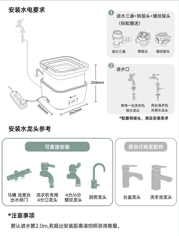包装内附各种配件,简单安装后,就可以帮大洗衣机分担洗衣任务;