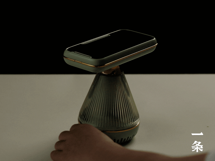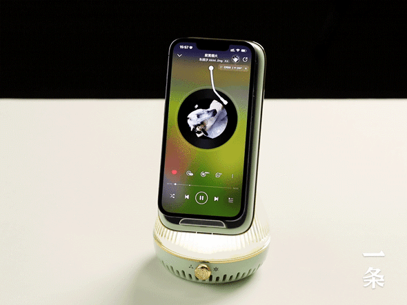 在它身体里,有一个“磁感应扩音系统”,只要感应到手机来了,就会接管手机的喇叭,转变成用自己的喇叭来扩音。