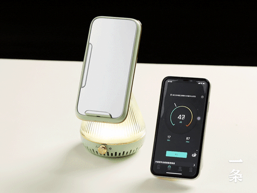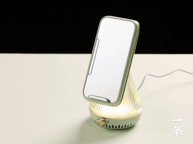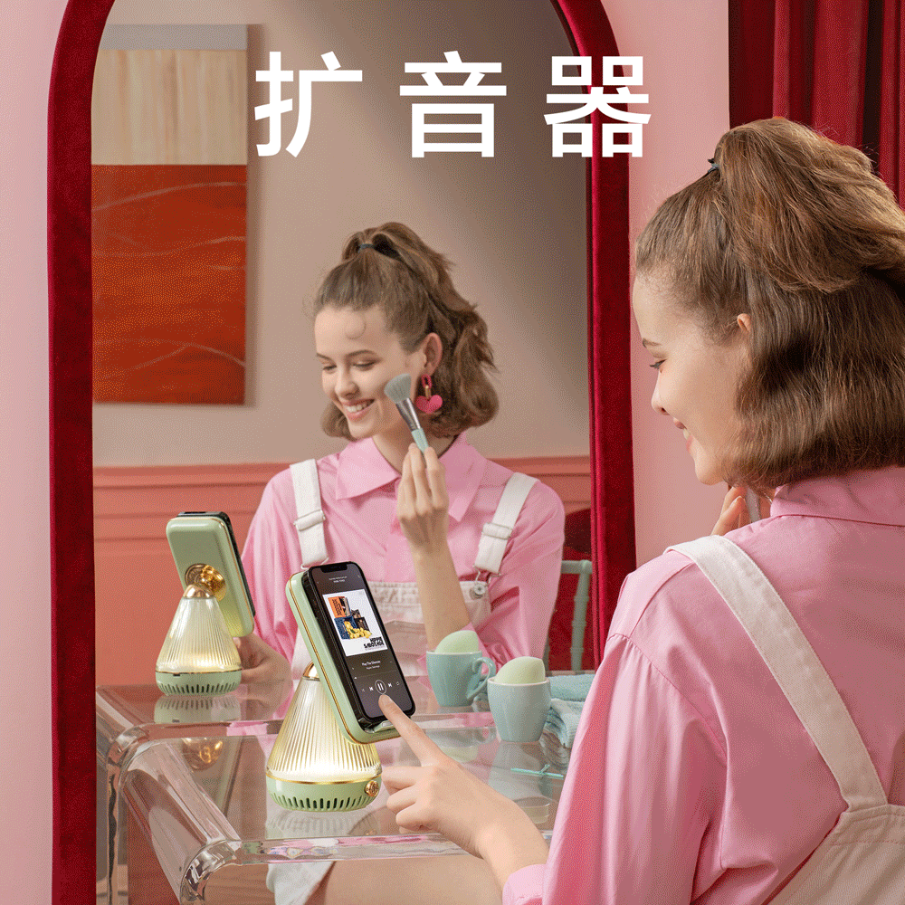 她说:“这是镜面无线充小夜灯手机支架扩音器蓝牙小音箱。”
