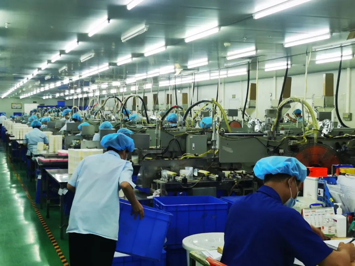 此外,这是一个典型的劳动力密集型企业,近两年的员工数量达到500人左右。其中“大包装”车间的人数占比近三分之一。在这里,棉签中的棉棒被缠上棉花,变成棉签,并进行部分包装。从棉签装入塑料圆盒、往盒中加入纸质标签、盖上盖、套上收缩膜、分两个装或多个装再套上一层收缩膜、放入纸箱、贴上胶带、搬运到物流仓库等都要人工参与,而且是视力好、手速快的年轻人。