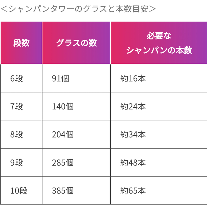 香槟塔的层数和对应的酒杯、酒瓶数