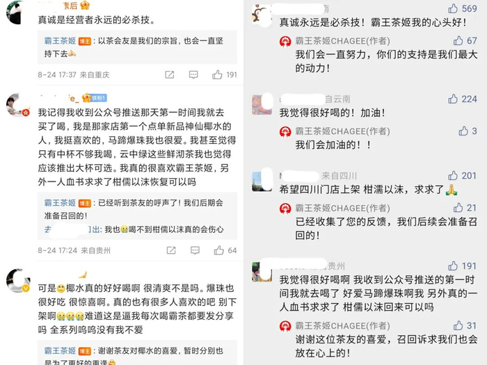 与此同时,另一种声音响起——不少网友认为,霸王茶姬这波操作很负责任,“第一次见这样负责任的官方,有心了!”