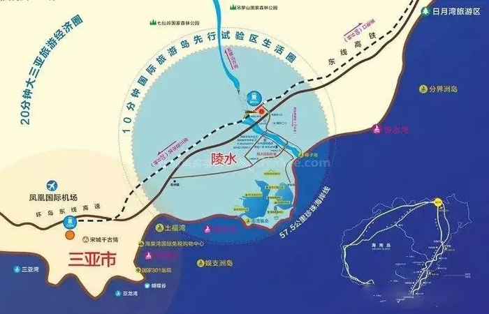 陵水紧挨着三亚,距离三亚仅有58公里,坐高铁20分钟就能到。本身就在“20分钟大三亚旅游经济区”内。