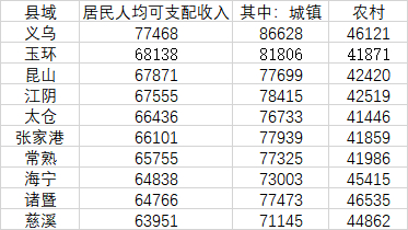 要知道,这几个县的经济在全国都是排名靠前的,2021年义乌城镇居民可支配收入8万6千多,昆山7万7千多。