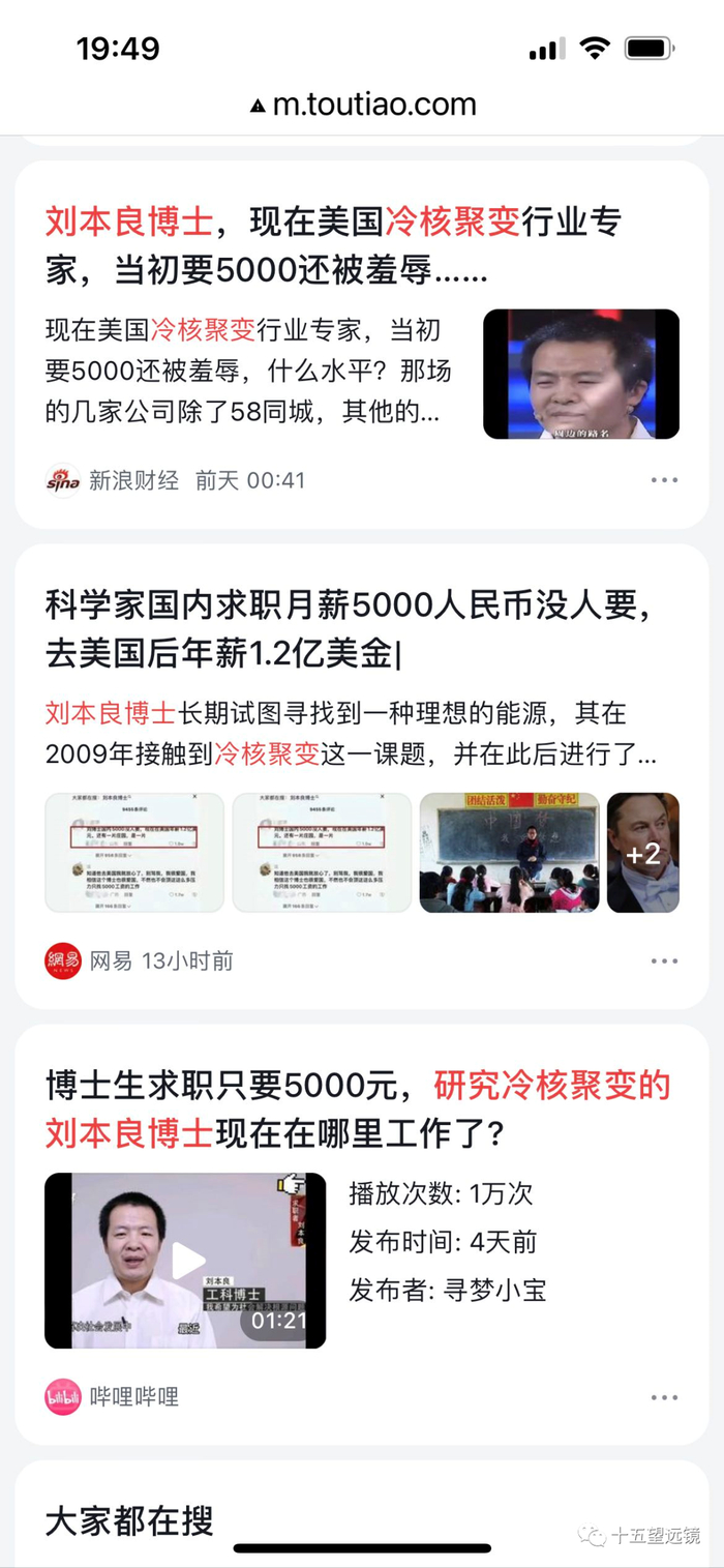 热核聚变几乎都是举国之力研究,才有了一点点突破,而刘本良这位博士靠家人资助就取得重大突破,可能吗?如果有一点点可能,以中国今天的财力,绝不会让他流失到美国,毕竟他的要求并不高,不要说月薪5000元,就是比亚迪这样的企业,也完全可以给他开出5万的月薪。