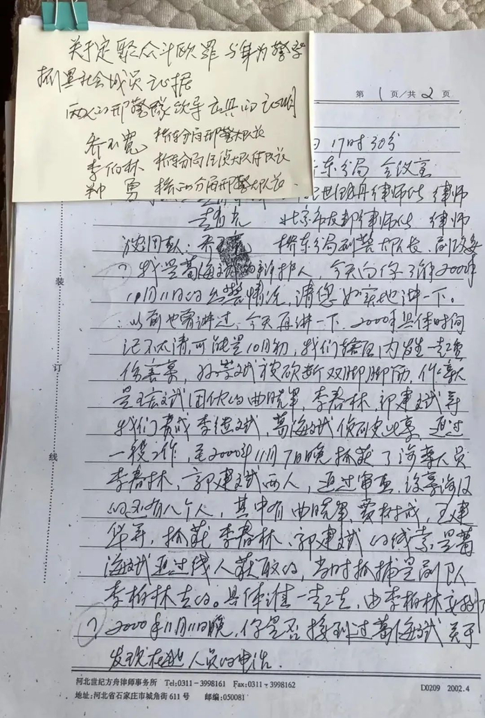 时任辩护律师在一份材料中称,经调查葛海斌、葛海龙原所在的刑警队领导证实:2000年,桥西分局专项部署了对黑势力团伙成员王宏斌、史红旗等人的抓捕任务。身为刑警队员的葛海龙通过侦察暗访,曾向刑警队报告过王宏斌等人的行踪,分局领导和刑警队多次组织干警出警抓捕,但均扑空。为此,葛海龙又依靠在桥东分局刑警队任刑警的哥哥葛海斌一同寻找王宏斌等人下落。“鉴于干警们屡抓屡空的现状,二人出于急功近利思想的驱动,采取了这种过激不当的方法,目的是把王宏斌引出来,再通过警力抓他。”