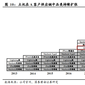 立讯从2011年起就在给苹果代工产品,2017年给苹果代工Airpods,之后相继接下手表、iPhone组装业务。随之而来的是苹果订单占公司的收入必中从12%逐渐增长到今天的70%,可以说立讯的发展史是深度绑定苹果。