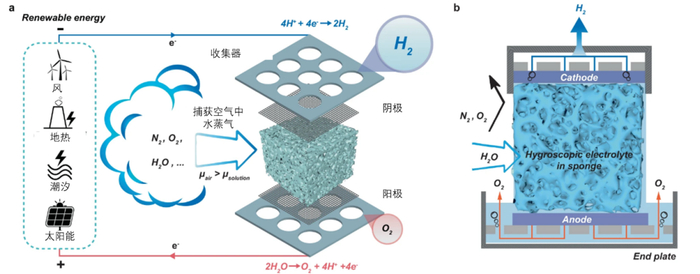 近日,来自中国和澳大利大的研究人员使用吸湿性电解质吸收空气中的水分,然后利用来自太阳或风的能量为电解提供动力。该研究结果发表在《自然通讯》杂志上。
