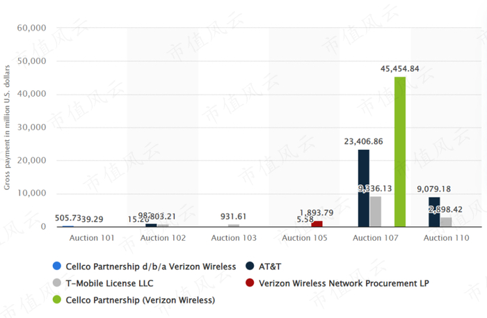 美国的5G时代就是一场比拼财力的比赛。公司在频谱上投资更多,也获取了对应的优势。