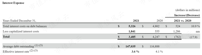 不过公司在2021年将大量利息资本化,利息费用相较去年反而有所下降。