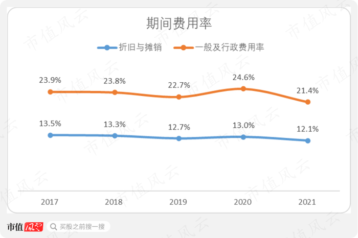 公司的期间费用率主要由一般及行政费用和折旧与摊销组成。