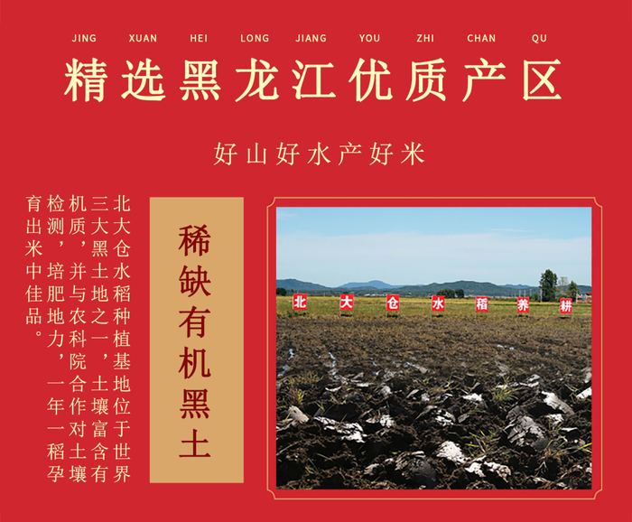 坐落于稻米之乡———黑龙江省五常市,有“东方第一稻”和“中国绿色米都”之誉,北大仓旗下黑土地品牌连续三年荣获国际金奖!