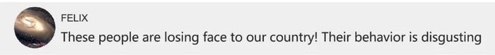 “这些人简直是在丢我们国家的脸!他们的行为令人作呕。”