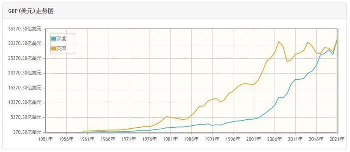 印度、英国的GDP对比图