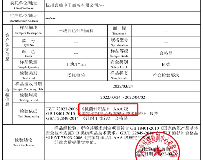 面料中还增加了功能性抗菌,让秋冬的衣服多穿几天也放心,话不多说,直接上专业检测报告证明~