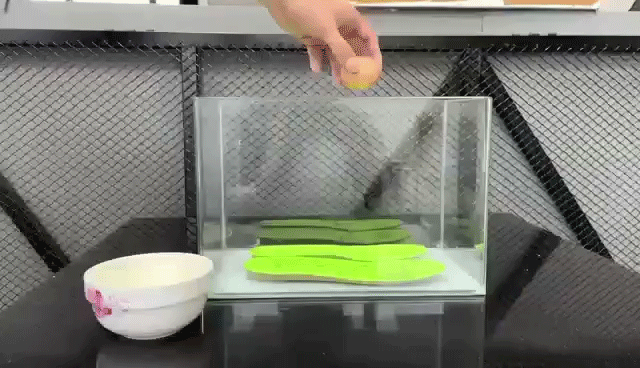 鸡蛋弹到鞋垫上竟然没有碎,还能弹起来!