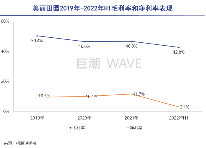 然而在高端消费下,这个“美容界的爱马仕”的盈利能力却与真的爱马仕相去甚远。2019年至2021年,美丽田园的毛利率和净利率分别维持在45%和10%左右。2022年上半年,其业绩更是急转直下,仅实现净利润2295.8万元,同比下滑高达78.16%。