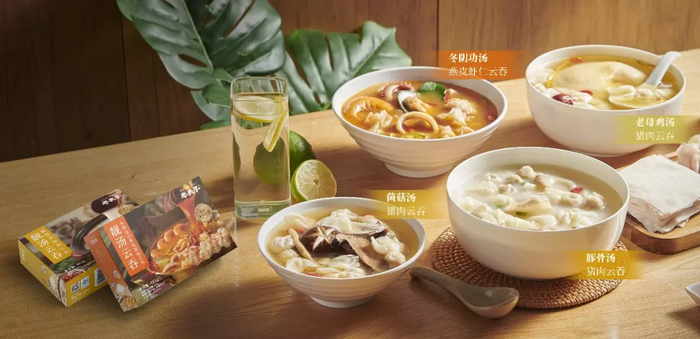 第一个新品牌主打东方创意美食,名为“岑夫子”,取自李白《将进酒》——岑夫子,丹丘生、将进酒,杯莫停。首个产品名为“靓汤云吞”。第二个品牌“纳百味”以能量早餐、怡情夜宵、火锅聚餐、日常主食为主要场景,还未推出标志性产品。