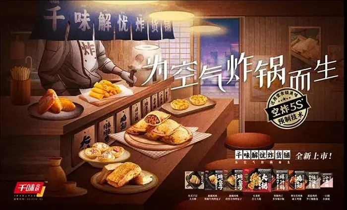 其中一个引人注目的是主打空气炸锅美食的“千味解忧炸货铺”,为空气炸锅而生踩中了现在年轻人做饭的痛点。