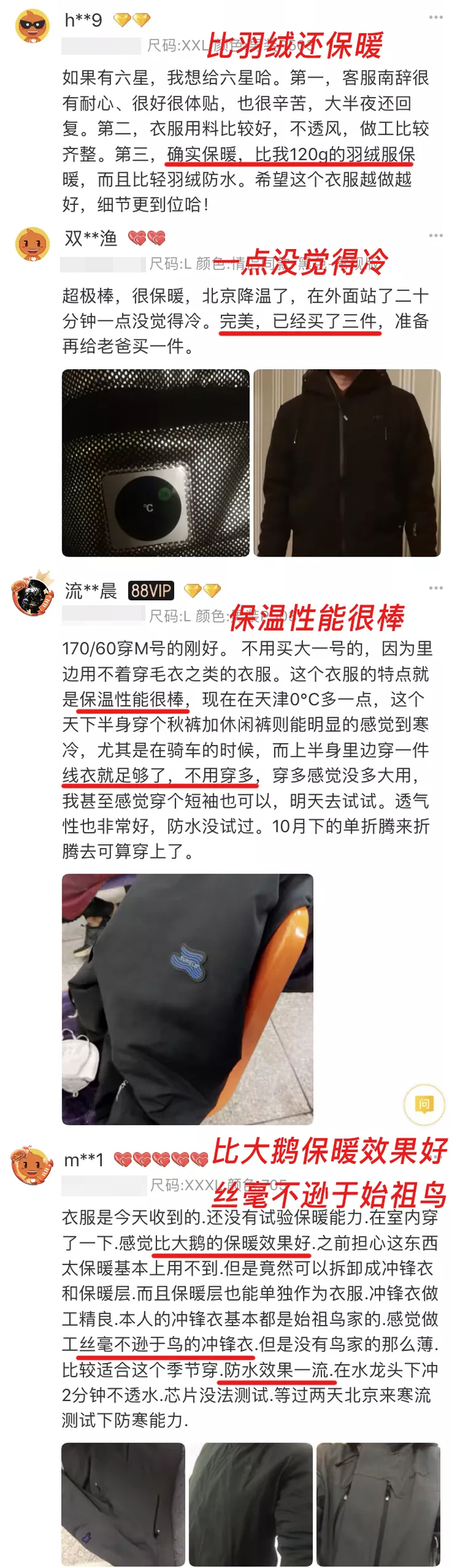 ◉ 叁:长白山顶实测,保暖效果比羽绒服好