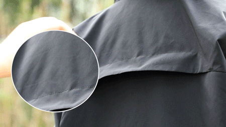 水被泼溅到面料上时,马上就会滚落,不浸湿内层,防护日常雨雪毫无问题。