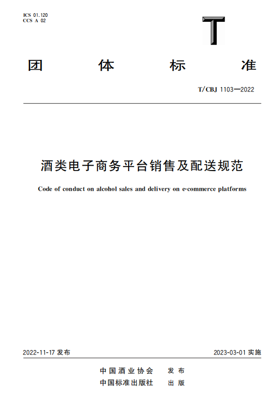 社会公益 标准先行 |《酒类电子商务平台销售及配送规范》团体标准自2023年3月1日正式实施